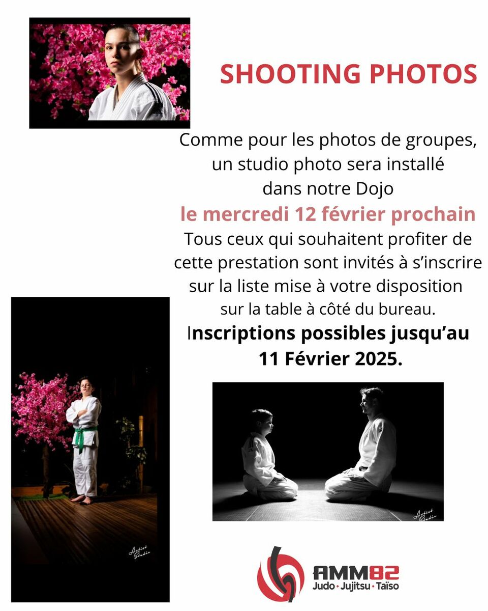 Comme pour les photos de groupes, un studio photo sera installé dans notre Dojo le mercredi 12 février prochain.
