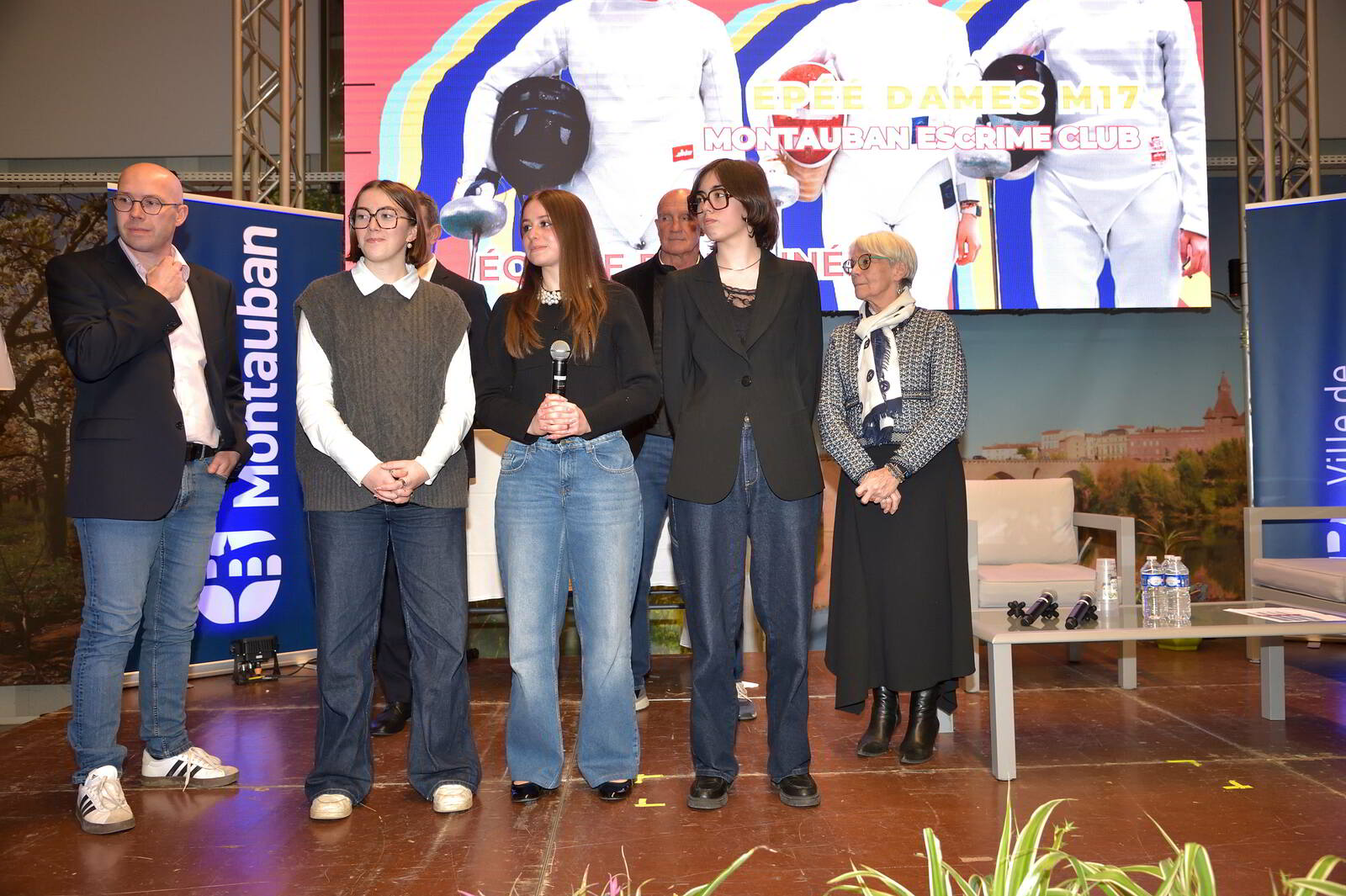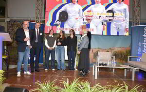 Notre club était fièrement représenté par des membres du bureau — Cécile, Fabienne et Bénédicte — par notre enseignante Sophie, ainsi qu’Olivier, à la fois représentant de l’OMEPS et dirigeant au sein du club.
